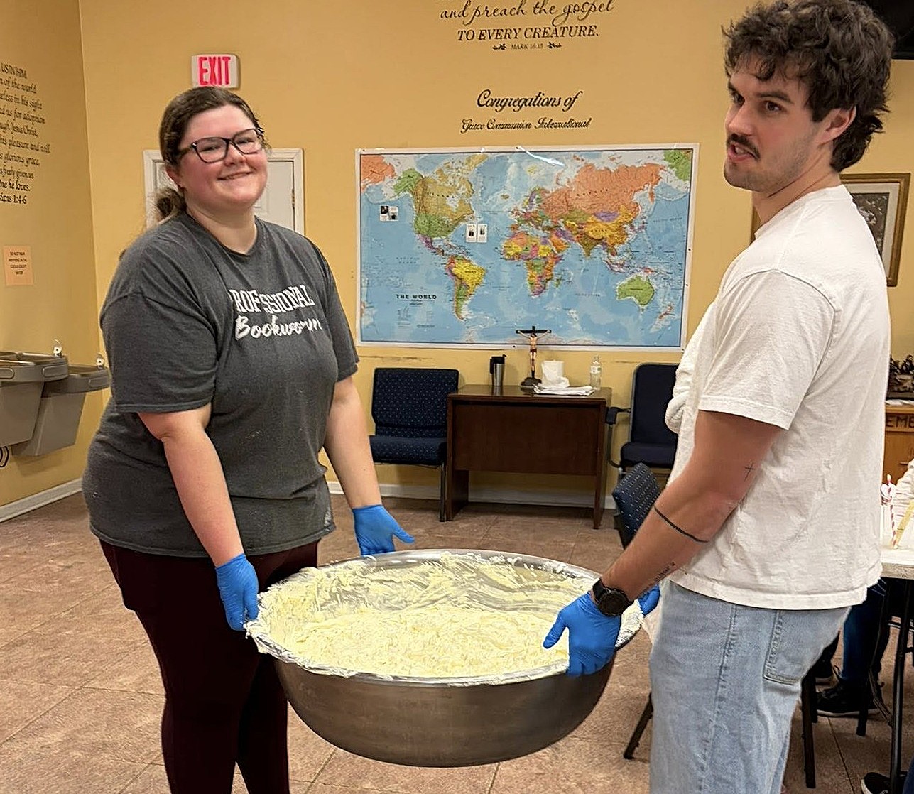 Every Saturday morning, they set up in the hallway of their church building. Then they welcome their neighbors with food insecurity to pick up groceries.