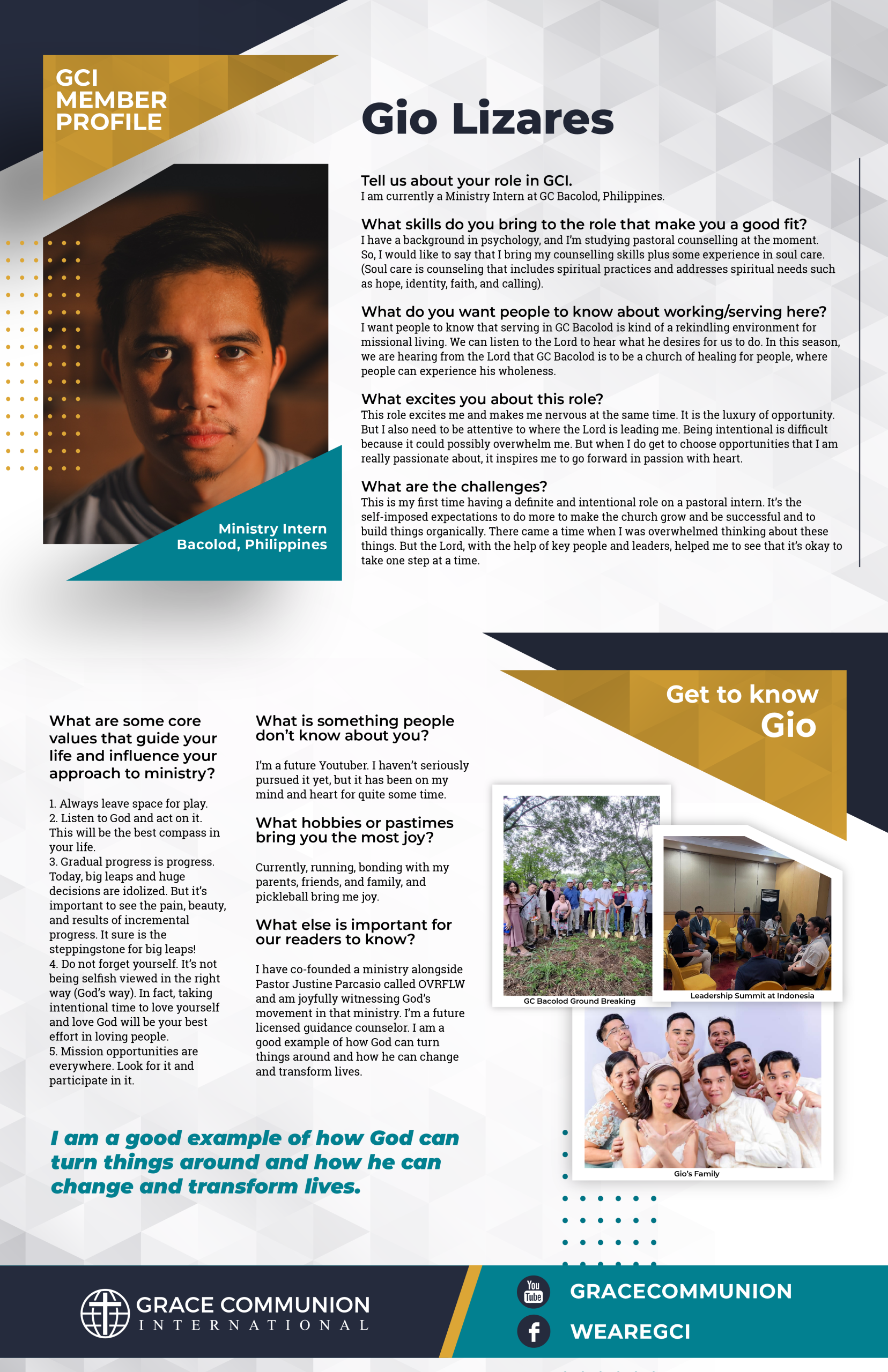 Meet Gio Lizares, pastoral intern at GC Bacolod in the Philippines. His journey is marked by intentional, faithful steps as he learns to follow God one season at a time.