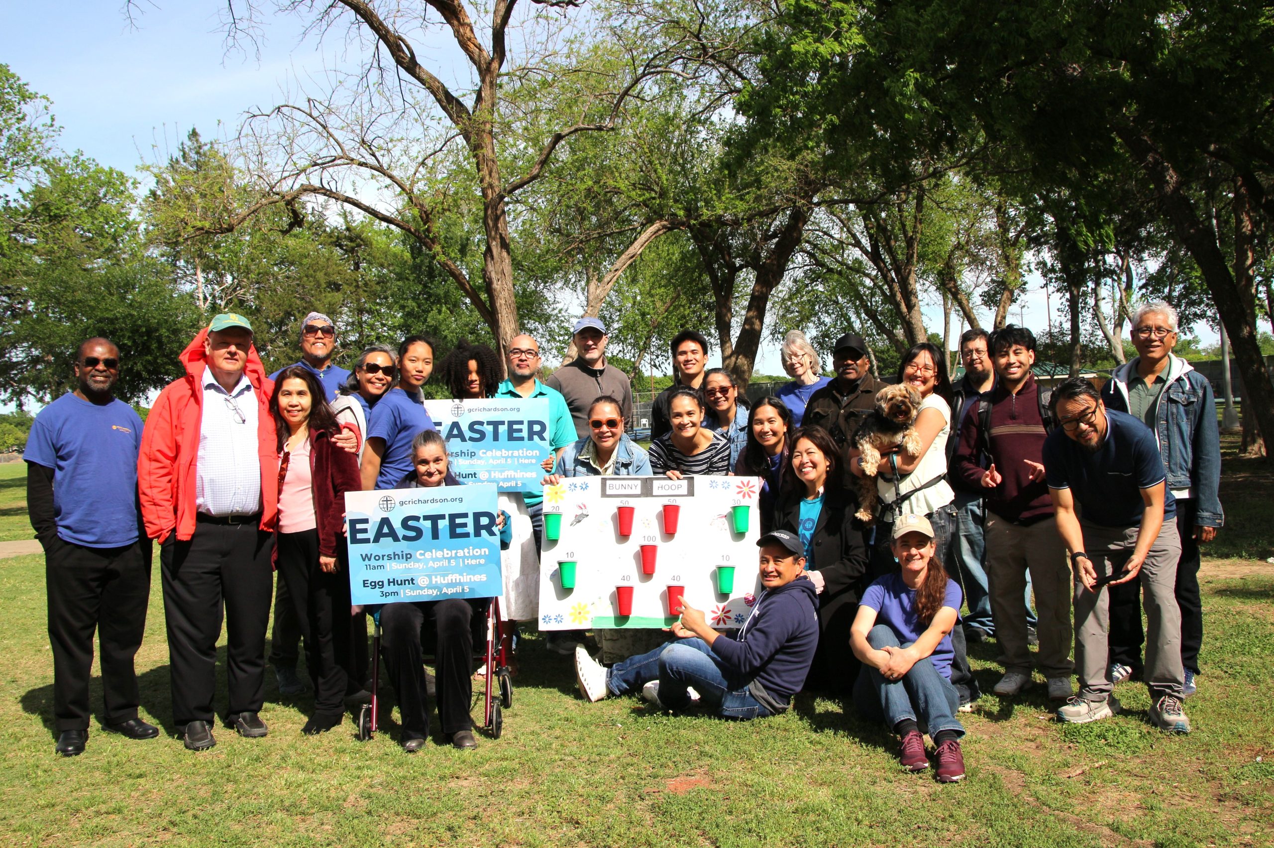 Resurrection Sunday for Grace Communion Richardson meant inspiring worship followed by a picnic in the park and our fourth annual neighborhood Easter egg hunt. The egg hunt was held at the city park across the road from where we meet. It included booths for games, egg painting, sharing of Love Your Neighbor engagers, and streaming the Light of the World movie. We reminded the crowd that the event is a sharing of our joy and hope in the Risen Lord who loves children.